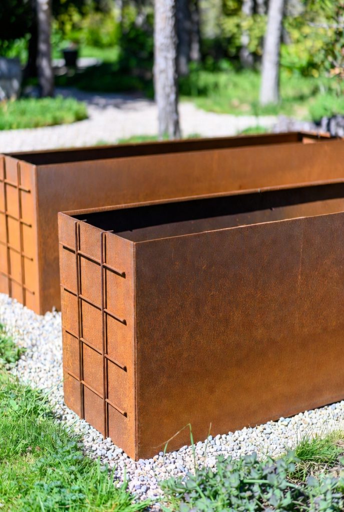 Stal Corten wyróżnia się charakterystyczną, rdzawą patyną, która powstaje naturalnie na powierzchni materiału. Co istotne, warstwa ta pełni funkcję ochronną i zabezpiecza metal przed dalszą korozją. Dzięki temu donice z cortenu są niezwykle trwałe, odporne na zmienne warunki atmosferyczne oraz uszkodzenia mechaniczne. Doskonale sprawdzają się zarówno na tarasach prywatnych, jak i w przestrzeniach komercyjnych – przy restauracjach, hotelach czy nowoczesnych biurowcach.